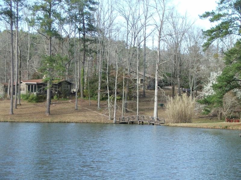 The Champlin Farm is 127 acres +/- of beautiful land for sale in Woodstock, Tuscaloosa County, Alabama for $1,550,000. This getaway has been a family retreat for nearly the past century. The property is gorgeous with large hardwoods throughout. A 12 acre lake is the crown jewel of this farm, and the views are stunning. There are three homes on the property. The main home is an attractive old log cabin. It offers 3 bedrooms and two baths with a living room, kitchen, and a dining room with panoramic views of the lake. Behind the log cabin is a guest house. The caretaker's home offers 3 bedrooms and 1 bath.